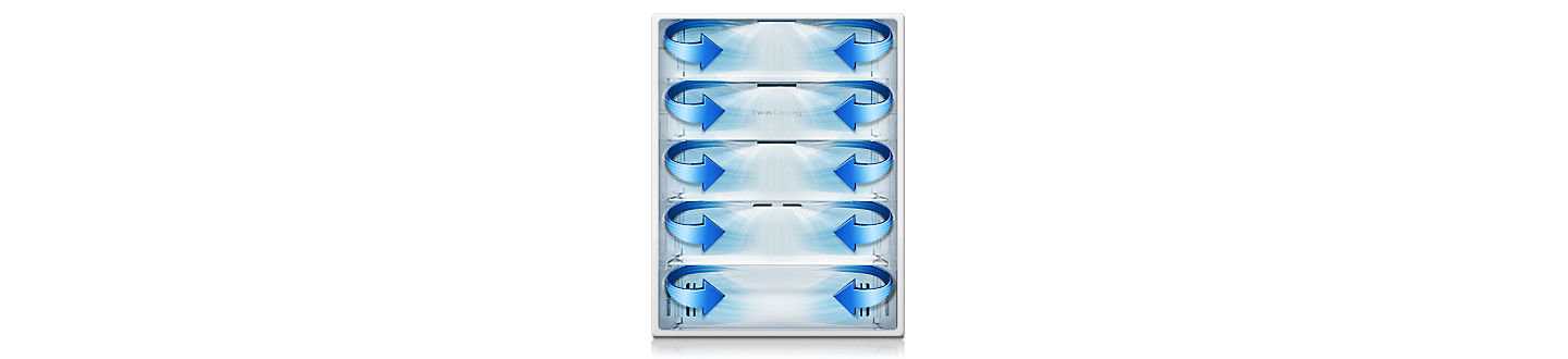 Dwa niezależne nawiewy do każdej z komór precyzyjnie kontrolują temperaturę i utrzymują optymalny poziom wilgotności zarówno w chłodziarce, jak i w zamrażarce. Technologia Twin Cooling System™ sprawi, że jabłka dłużej pozostaną świeże, ulubione lody nie pokryją się szronem, a kostki lodu nie przejdą zapachem pieczywa czosnkowego, które leżało obok. |