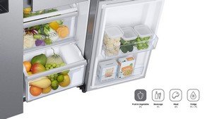 Łatwo dostosuj ustawienia temperatury Przechowuj jedzenie i napoje w optymalnej temperaturze, aby na dłużej zachowały świeżość i smak. Strefa FlexZone™ to wydzielona strefa w lodówce z czterema możliwymi ustawieniami temperatury: 0°C, 1°C, 3°C lub temperaturą z chłodziarki (1°C ~ 7°C), które można dostosować do aktualnie przechowywanych produktów. |