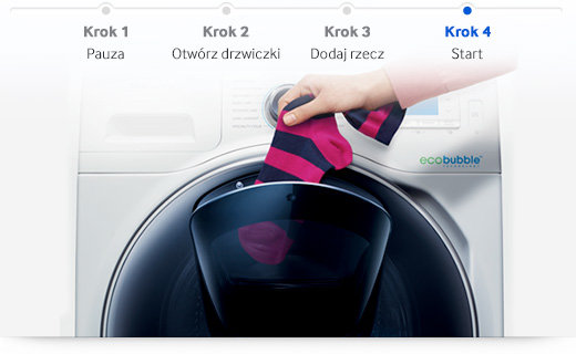 - Łatwo i bezpiecznie dodawaj pranie w każdym momencie, bez zagrożenia wylania wody czy piany na podłogę. Wystarczą 4 proste kroki: