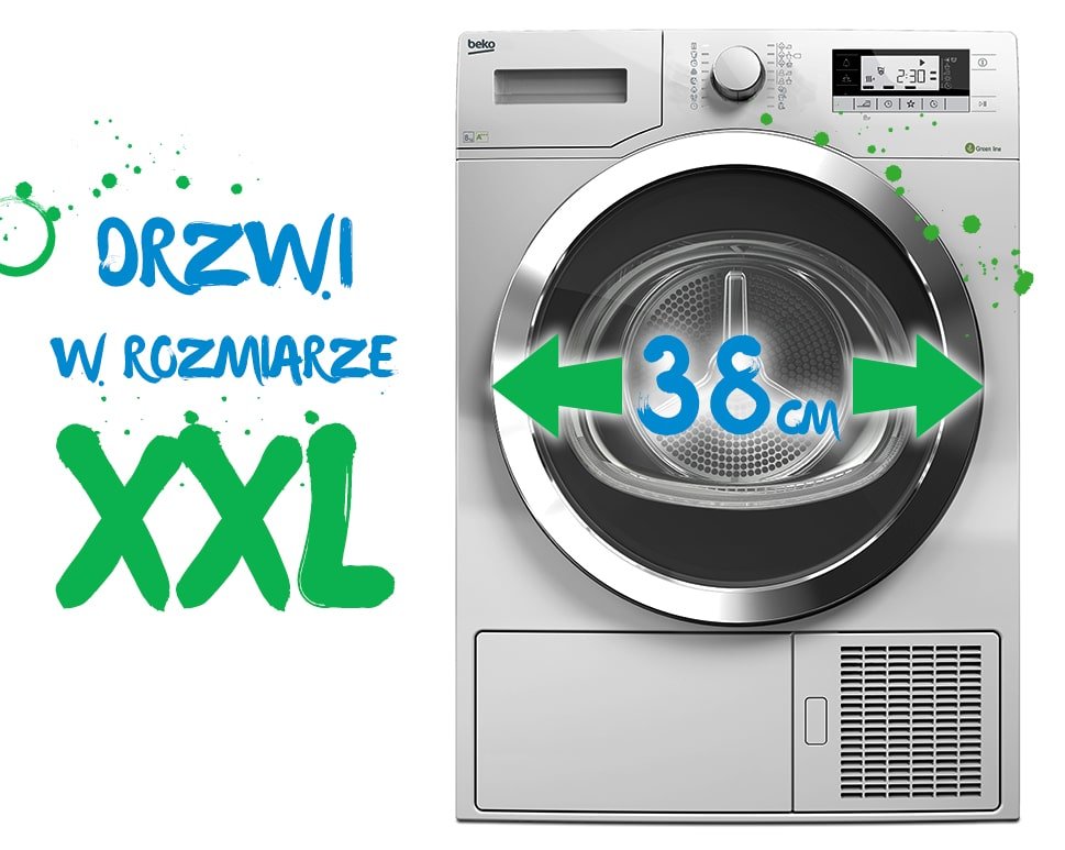 | Drzwi w rozmiarze XXL Zasłonki, koce, czy dużą pościel bez problemu załadujesz przez szerokie, wygodne drzwi o średnicy 38 cm. |