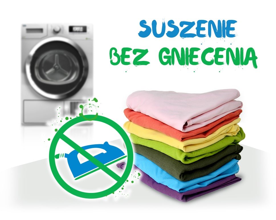 Suszenie bez gniecenia Koniec z wygniecionymi ubraniami i denerwującym śladem po sznurku! Delikatne ruchy bębna sprawiają, że suche rzeczy są gotowe do noszenia, bez konieczności prasowania. |