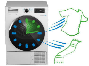 | Pompa ciepła | Pełna ochrona ubrań i najwyższa wydajność Kondensacyjne suszarki Beko wyposażone w pompę ciepła wykorzystują chłodzący i grzewczy element pompy ciepła zapewniając najlepsze rezultaty w niższej temperaturze suszenia. Innowacyjna technologia zastosowana w suszarkach Beko gwarantuje bezpieczeństwo suszonych ubrań. |