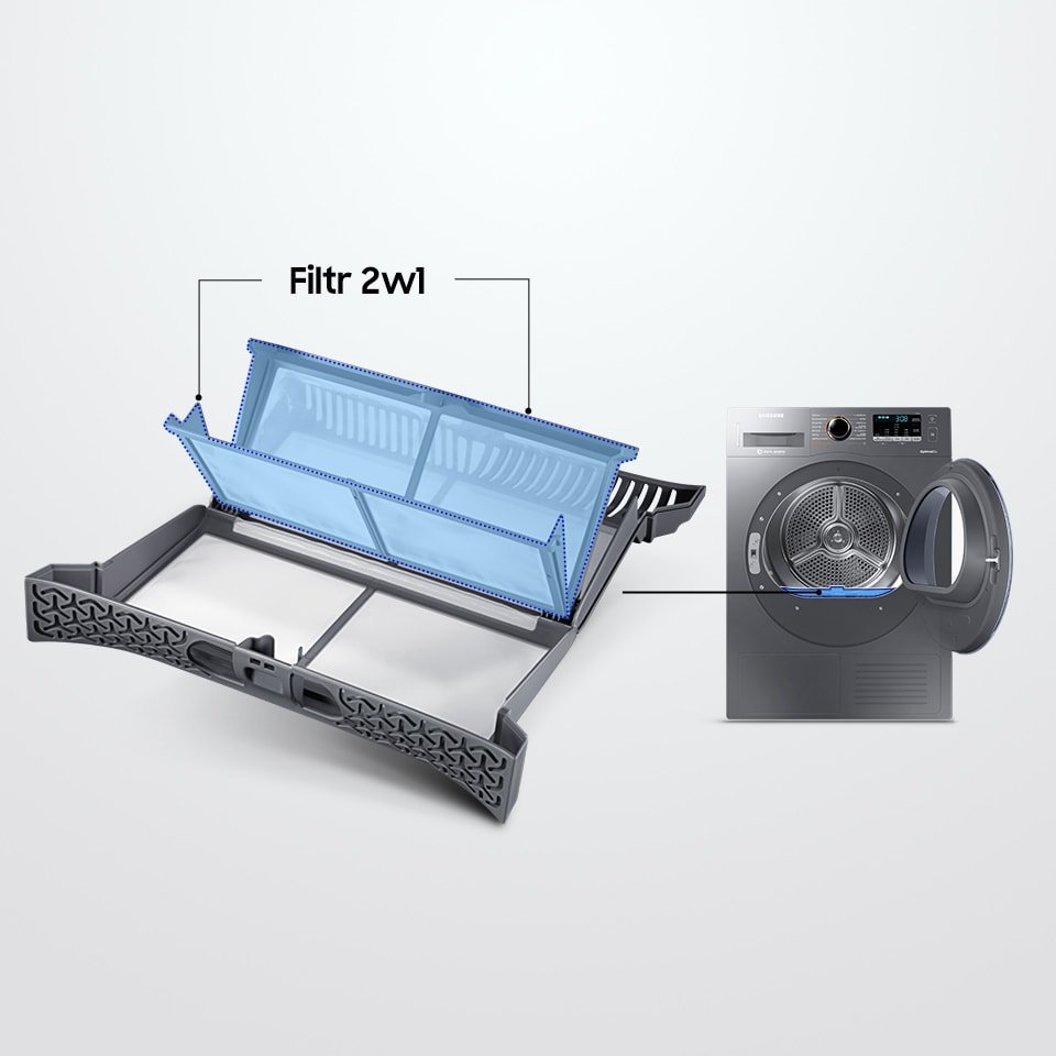 Rozsądnym rozwiązaniem będzie zakup suszarki z nowym filtrem 2w1, który znacznie ogranicza potrzebę czyszczenia filtra wymiany ciepła. Poza tym urządzenie samo poinformuje nas o konieczności czyszczenia, wyświetlając odpowiednią ikonę. System jest bardzo prosty w obsłudze i nieskomplikowany.