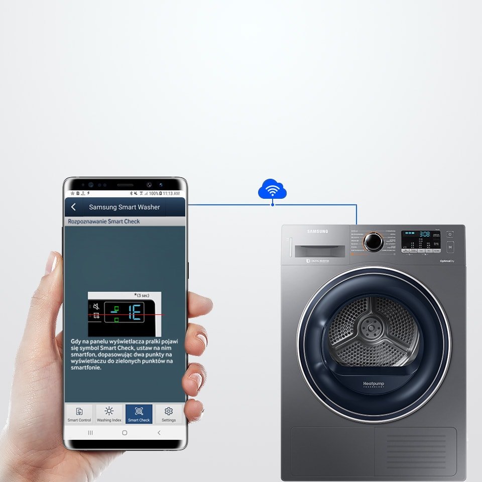 *Testy przeprowadzone zgodnie z normą IEC 61121:2013 dla wsadu 8 kg, porównujące program pełnego suszenia bawełny z wykorzystaniem pompy ciepła (DV80M5013KW) i bez niej (DV80H4100CW). Poszczególne wyniki mogą się różnić.