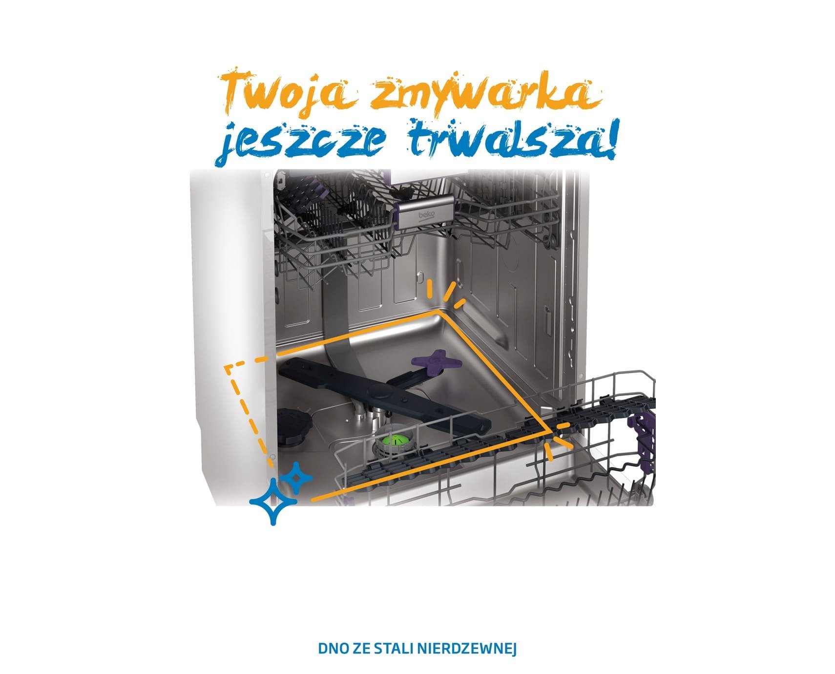 Dno ze stali nierdzewnej Wybierając zmywarkę, zwróć uwagę na to czy posiada ona dno ze stali nierdzewnej tak jak ten model. W przeciwieństwie do zmywarki z plastikowym dnem, stal nierdzewna gwarantuje znacznie większą trwałość i wyższy poziom higieny we wnętrzu urządzenia. Zmywarka Beko daje pewność, że nieprzyjemne zapachy nie zagoszczą we wnętrzu Twojego urządzenia, a jakość wykonania pozwoli cieszyć się nią przez wiele lat. |