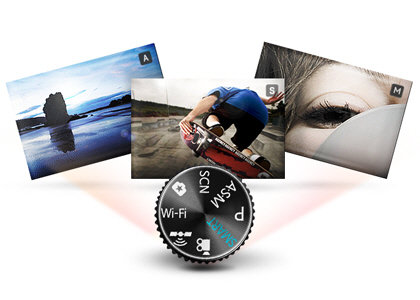 Pełny tryb ręczny (A / S / M) Pełny tryb ręczny umożliwia przejęcie kontroli i robienie zdjęć dokładnie tak, jak chcesz. Fotografowanie z priorytetem przesłony i migawki pozwala na eksperymentowanie z czasem otwarcia migawki i głębokości pola widzenia, dzięki czemu możesz robić zdjęcia szybko poruszających się obiektów przy słabym oświetleniu. Z aparatem Samsung najbardziej liczy się Twoja kreatywność.