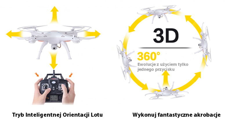 Tryb inteligentnej orientacji lotu oraz niezwykła łatwość wykonywania powietrznych akrobacji, czynią model Syma X5SW niezwykle łatwym w opanowaniu i sterowaniu, dzięki czemu przypadnie on do gustu także młodszym entuzjastom modeli latających.
