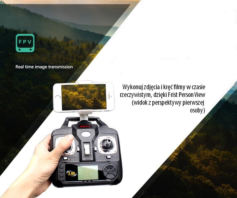 Dron Syma X5SW z kamerą FPV w technologii WiFi (przesyłanie obrazu bezpośrednio na telefon), trybem Inteligentnej Orientacji Lotu, sterowany radiem na częstotliwości 2.4GHz. Dzięki podglądowi w czasie rzeczywistym, Twoje zdjęcia i filmy będą jeszcze ciekawsze.