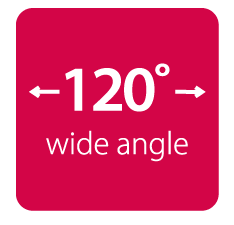 Kąt widzenia 120° Urządzenie obejmuje zasięgiem szeroką przestrzeń przed samochodem. |