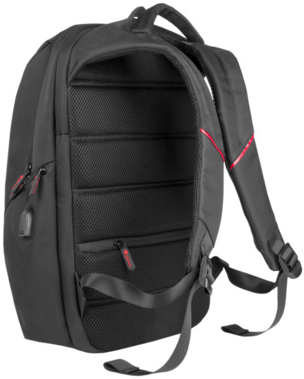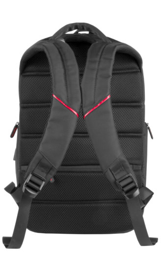 Czerwone elementy wykończenia wnętrza nadają plecakowi wyraźnego, ciekawego charakteru – godnego mistrza gamingu!