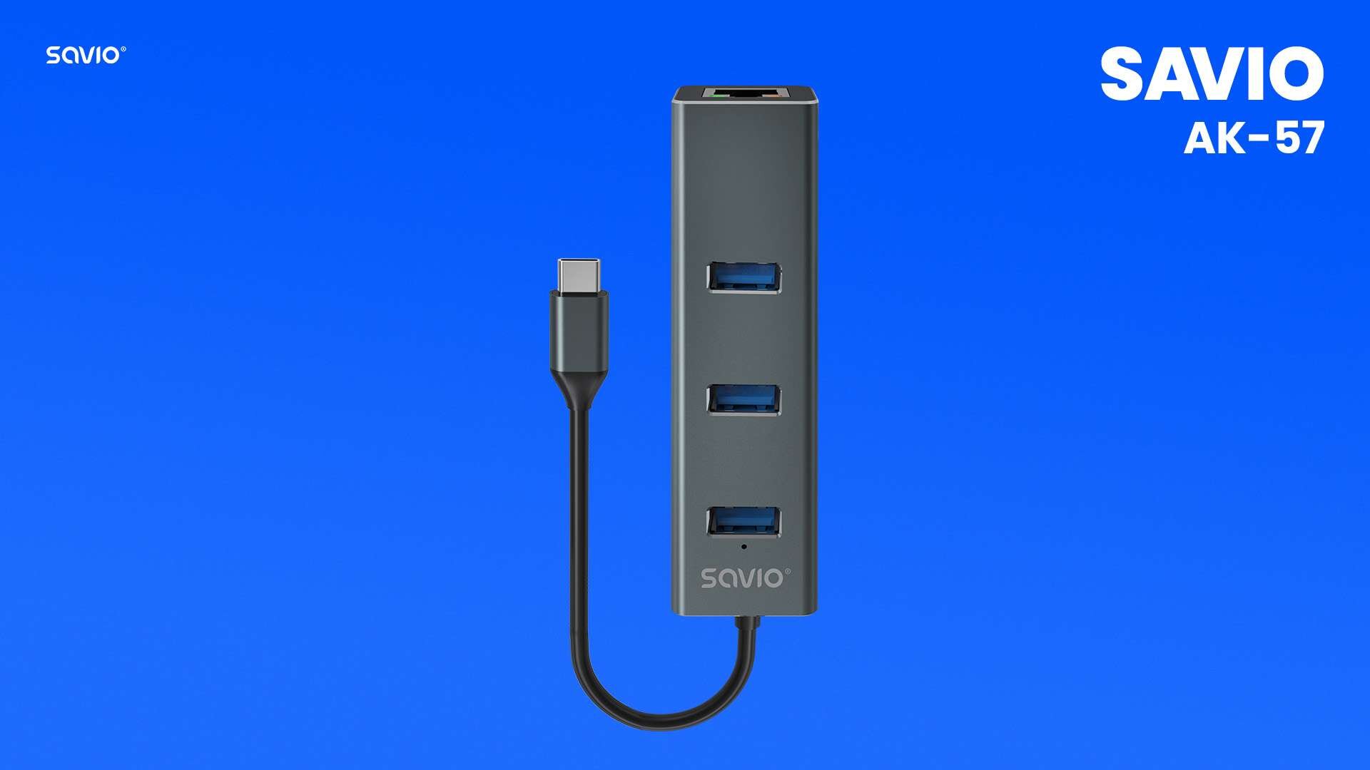 SAVIO AK-57 3-portowy hub USB-C 3.1 Gen 1 z adapterem RJ-45 Gigabit Ethernet