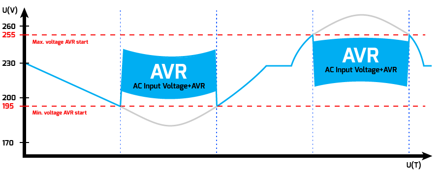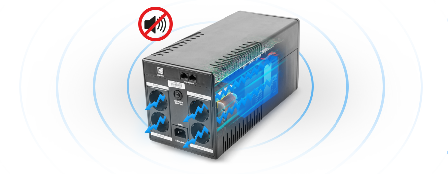 Całość zapewnia komfort oraz zachowuje wysoką wydajność, a w przypadku ciągłej nadwyżki lub deficytu napięcia zasilania UPS ma możliwość długiego utrzymania nominalnego napięcia na wyjściu UPS-a bez przechodzenia do trybu bateryjnego co pozwala oszczędzić czas, który stricte powinien być przeznaczony tylko na okres podtrzymania na baterii.