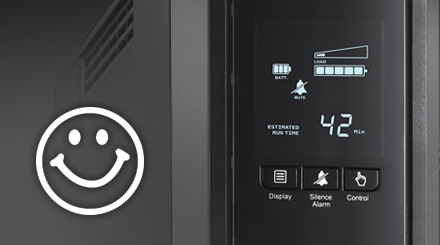 Intuicyjny interfejs umożliwia łatwe wprowadzanie zaawansowanych ustawień UPS poprzez inteligentny panel sterowania LCD. Zaawansowane ustawienia obejmują: ocenę stanu zasilania/baterii, włączanie i wyłączanie wyświetlacza LCD podczas użytkowania, wyciszanie dźwięku alarmu w trybie pracy baterii i samo testowanie.