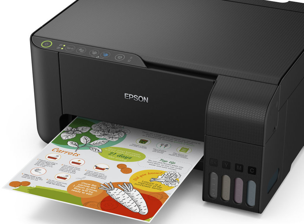 Kompaktowa drukarka EcoTank typu 3 w 1 z funkcją Wi-Fi Direct ma wszystko, czego potrzeba — smukłą, kompaktową konstrukcję, wydajną technologię i funkcję druku mobilnego. To niezawodne urządzenie zamiast kartridży wykorzystuje zaawansowany system napełniania pojemników z atramentem oraz proste w użyciu butelki z atramentem.