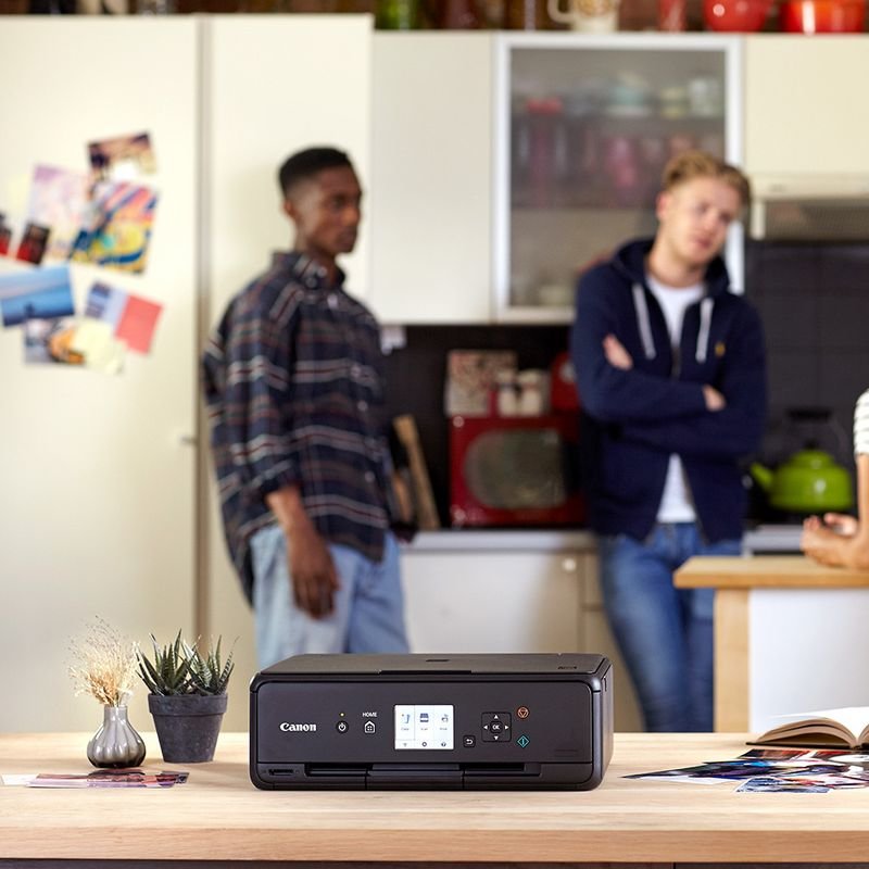 | Drukowanie z dowolnego miejsca Wbudowany w urządzenie PIXMA TS5050 Series moduł Wi-Fi umożliwia drukowanie z urządzenia inteligentnego lub komputera – wszystko dzięki obsłudze systemów Android, iOS i Windows 10 Mobile oraz funkcji Google Cloud Print. Ponadto możesz udostępniać zdjęcia wyjątkowych chwil za pomocą aparatu z funkcją Wi-Fi lub wbudowanego czytnika kart SD. |