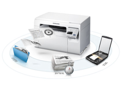Funkcje trzech urządzeń w jednej drukarce Samsung SCX-3405W usprawniają przepływ pracy w firmie i zapewniają maksymalną wydajność drukowania. Funkcje drukowania, kopiowania i skanowania w urządzeniu SCX-3405W oferują elastyczność i ułatwiają pracę. Innowacyjne funkcje kopiarki, takie jak kopiowanie dowodów tożsamości i wielokrotne kopiowanie jednego obrazu na stronie, wysyłanie zeskanowanych dokumentów na konto e-mail oraz wygodna funkcja faksu obsługiwanego z komputera to rozwiązania niezbędne do osiągania imponujących rezultatów w świecie biznesu.