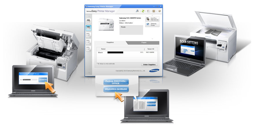 Poznaj uproszczony system zarządzania wydrukami dzięki funkcji Easy Printer Manager. Zintegrowane oprogramowanie EPM umożliwia szybką konfigurację urządzenia i monitorowanie jego statusu przy użyciu łatwego w obsłudze programu. Nigdy więcej nie będziesz martwić się, że w drukarce zabraknie tonera w najmniej oczekiwanym momencie, ponieważ oprogramowanie Easy Printer Manager obejmuje takie funkcje, jak zamawianie tonerów, wykrywanie urządzeń, łączenie z aplikacjami i wiele innych.