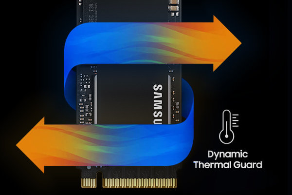 Zastosowany niklowany kontroler i rozpraszacz ciepła firmy Samsung zapewniają doskonałe odprowadzanie ciepła. System Dynamic Thermal Guard automatycznie monitoruje temperaturę pracy i utrzymuje ją na optymalnym poziomie ograniczając spadki wydolności dysku.