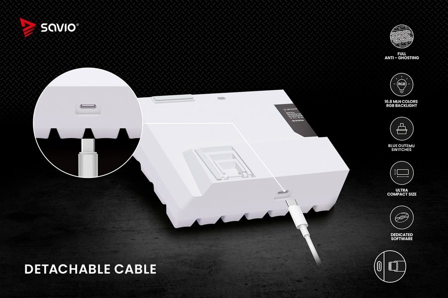 - Klawiatura SAVIO Whiteout Outemu Blue