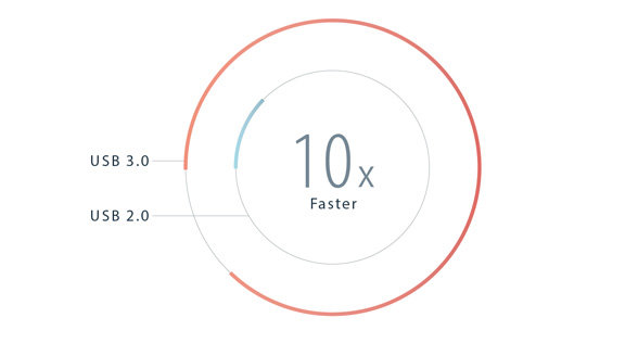 Notebook ASUS z serii X oferuje szeroki wachlarz opcji połączeń, które obejmują porty USB 3.0, HDMI i VGA, czytnik kart SD/SDHC/SDXC 3-w-1 oraz inne, co zapewnia kompatybilność z różnymi urządzeniami peryferyjnymi, a technologia USB 3.0 zapewnia dziesięciokrotnie większą prędkość transferu danych niż USB 2.0. Teraz możesz przesyłać zdjęcia, muzykę, a nawet duże pliki wideo w mgnieniu oka - przeniesienie 25 GB pliku Blu-ray trwa zaledwie 70 sekund.