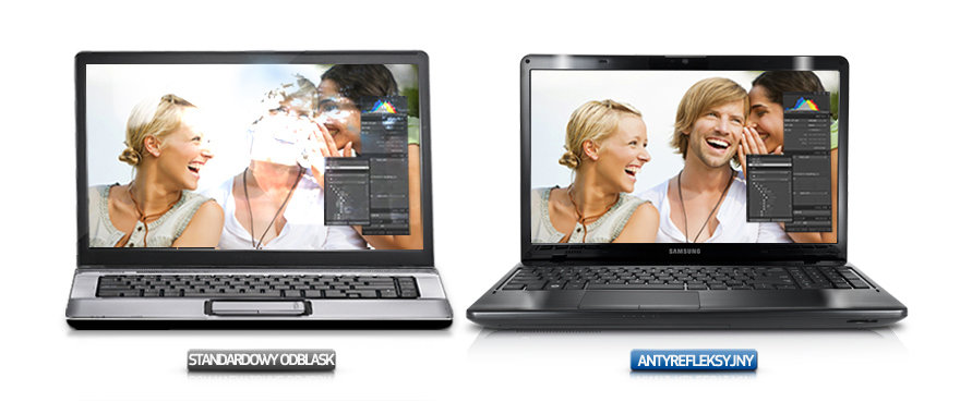 Antyrefleksyjny wyświetlacz LED pozwala cieszyć się doskonałą jakością obrazu, wyraźnymi detalami i bogactwem kolorów, nawet przy korzystaniu z notebooka na zewnątrz w pełnym słońcu lub wewnątrz przy intensywnym oświetleniu. Matowa powierzchnia nie wywołuje efektu lustra, co zmniejsza zmęczenie oczu.