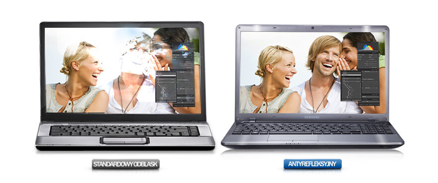 Antyrefleksyjny wyświetlacz LED pozwala cieszyć się doskonałą jakością obrazu, ostrością detali i bogactwem kolorów, nawet przy korzystaniu z notebooka na zewnątrz w pełnym słońcu lub wewnątrz przy intensywnym oświetleniu. Matowa powierzchnia nie wywołuje efektu lustra, co zmniejsza zmęczenie oczu.