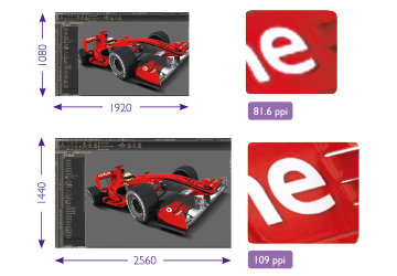 Dzięki Wysokiej 2560x1440 QHD (WQHD) rozdzielczości, można mieć ponad 77% więcej miejsca do pracy i wyższe ppi w porównaniu do konwencjonalnych monitorów 1920x1080 FHD. Dodatkowe miejsce pracy oznacza mniejszą konieczność scrollingu na powiększanie i pomniejszanie, a wyższe ppi daje ostrzejsze i bardziej precyzyjne wrażenie wizualne.
