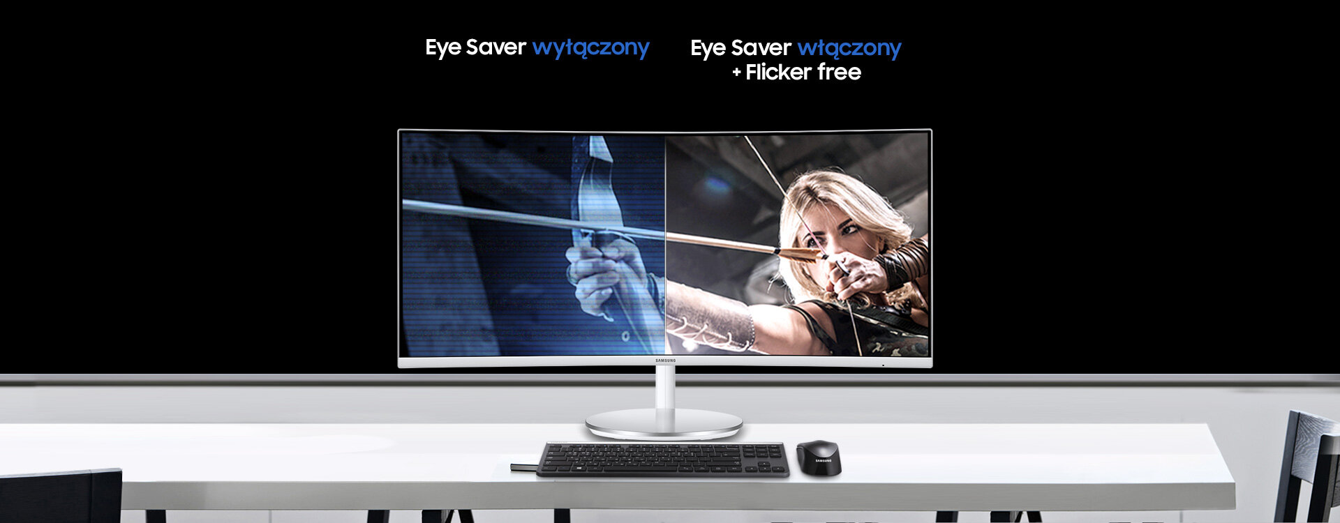 Zakrzywiona linia ekranu jest dostosowana do kształtu oka, dzięki czemu każdy punkt na monitorze znajduje się w dokładnie tej samej odległości od centrum oka. To właśnie odróżnia zakrzywione matryce od tradycyjnych, płaskich modeli. Dzięki odpowiednio wyprofilowanej linii ekranu opartej o okrąg o promieniu 1800 mm, oczy są znacznie mniej zmęczone, nawet podczas wielogodzinnej pracy lub długiego korzystania z wyświetlacza. Wysoka ergonomia urządzenia gwarantuje większe bezpieczeństwo dla oczu, a także zapewnia wyższy komfort użytkownika.