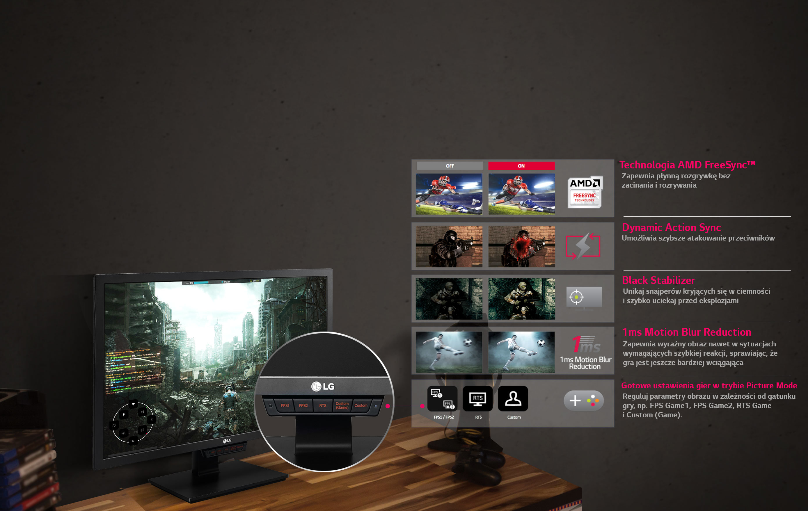 - Monitor dla graczy z funkcją 1ms Motion Blur Reduction
