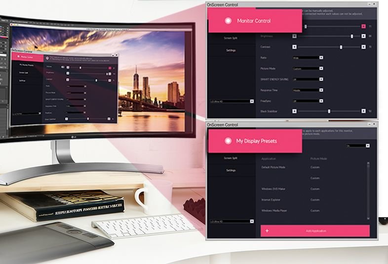 Menu ekranowe OnScreen Control pozwala kilkoma kliknięciami myszy, bez dotykania monitora, regulować ustawienia obrazu. Opcja My Display Presets pozwala na przypisanie indywidualnych ustawień monitora do konkretnych aplikacji. Teraz nie musisz już za każdym razem wybierać optymalnych ustawień ekranu.