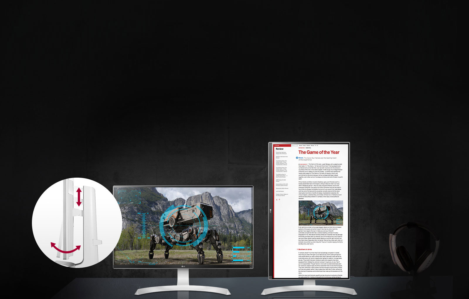 Możliwość ustawienia ekranu w pionie ułatwia prace graficzne, np. edytowanie stron internetowych i pisanie bloga. Wystarczy przekręcić ekran do żądanej pozycji i już można wygodnie oglądać treść bez przewijania. Dodatkowym udogodnieniem jest funkcja ustawiania wysokości.