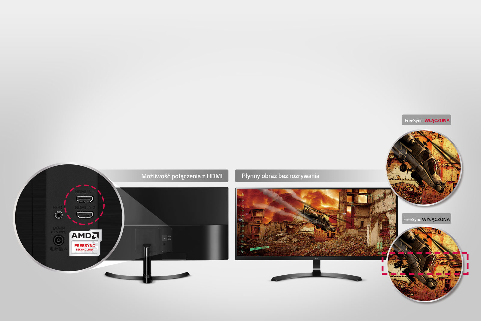 | Maksymalna radość z gry Ciesz się realistycznym obrazem i płynną rozgrywką bez rozrywania dzięki ulepszonej funkcji FreeSync (przez HDMI). Przy użyciu HDMI bez problemu włączysz funkcję FreeSync. |