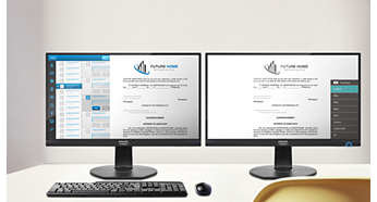 Monitor o wąskim obramowaniu — jednolity wygląd Nowe monitory firmy Philips mają niezwykle wąskie obramowanie, które nie odciąga uwagi od obrazu i pozwala na uzyskanie jego maksymalnego rozmiaru. Szczególnie w przypadku łączenia wielu monitorów, także w trybie kafelków, np. dla potrzeb gry, tworzenia projektów graficznych oraz profesjonalnych zastosowań, wyświetlacze z bardzo wąską ramą zapewniają wrażenie korzystania z jednego dużego wyświetlacza. |