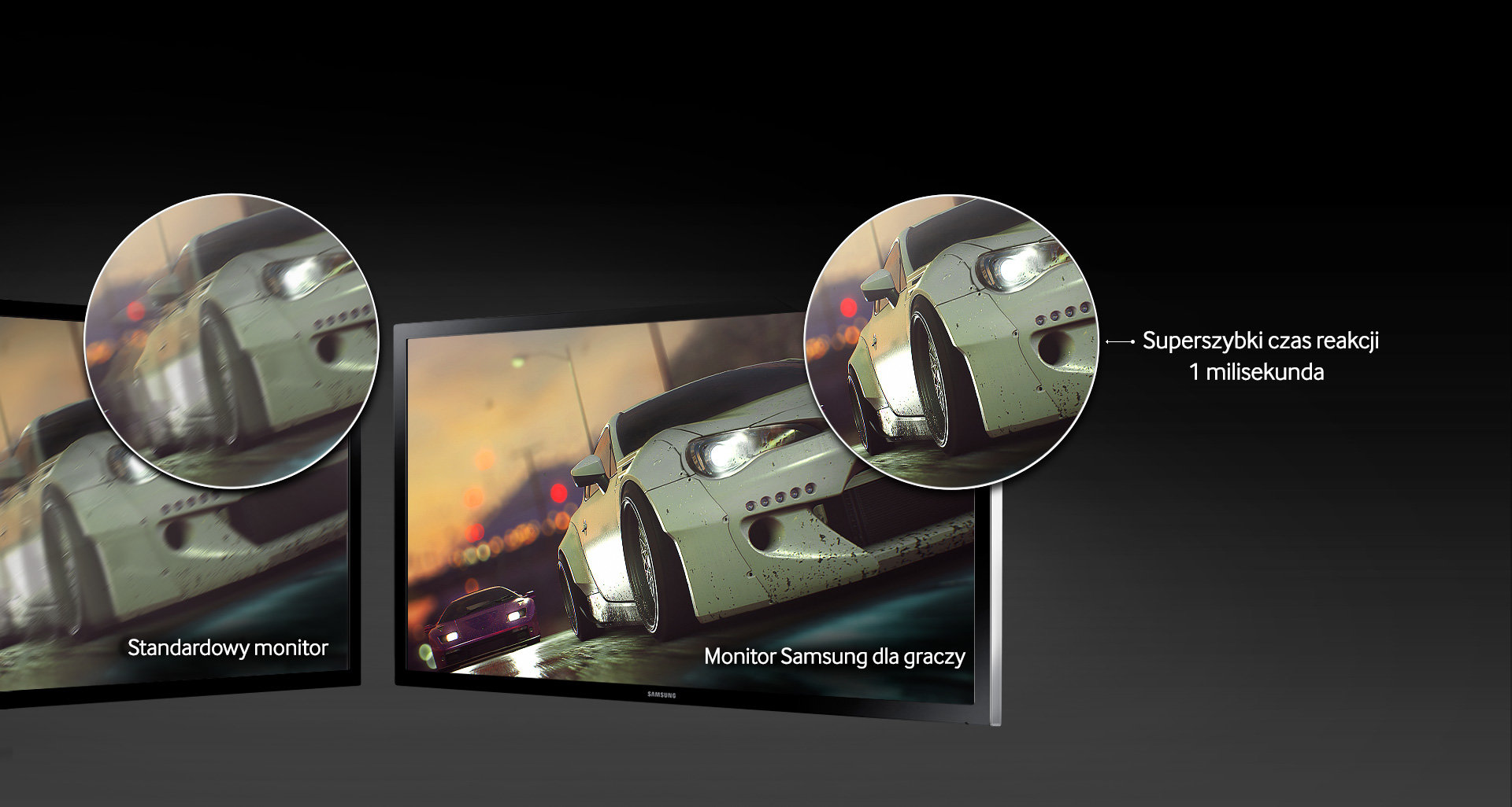 | Superszybki czas reakcji 0,001 sekundy! Twój monitor Samsung natychmiast przeniesie Cię do świata emocjonujących wydarzeń z filmów akcji, gier i sportów – jego czas reakcji to tylko 1 milisekunda! Nawet najszybszy ruch na ekranie zobaczysz jako płynny i wyraźny, bez żadnych poruszeń czy zanikania. Ten monitor nie zawodzi! Możesz na nim polegać w krytycznym momencie akcji. |