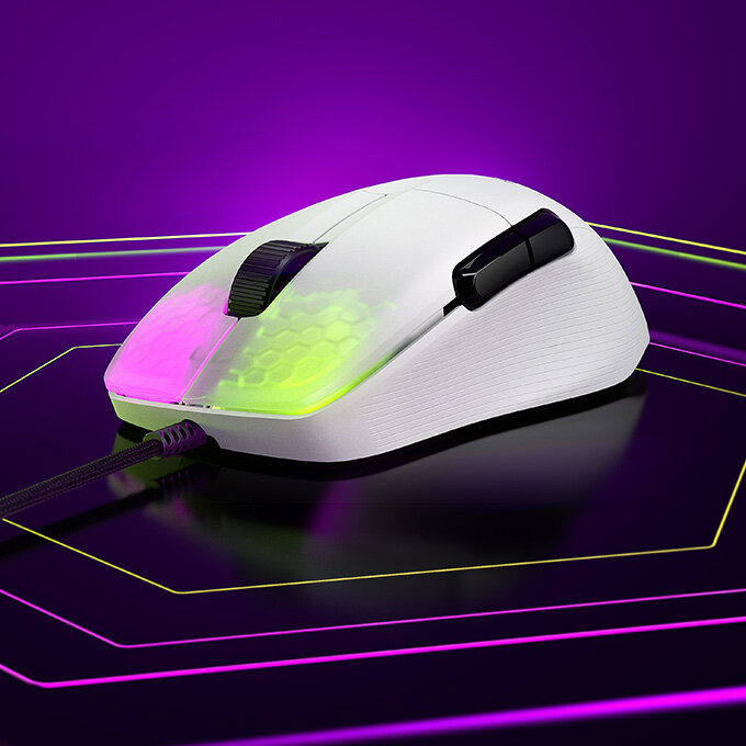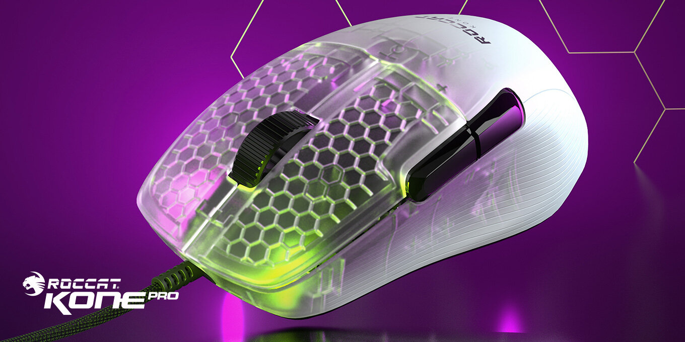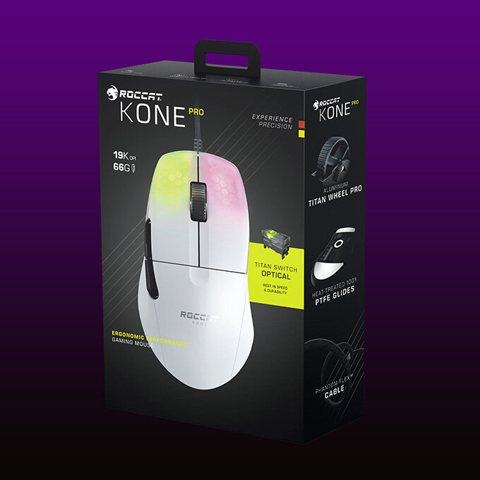 W ROCCAT® Kone Pro zastosowaliśmy nasze najlepsze autorskie technologie, takie jak przełącznik Titan Switch Optical, obudowę ROCCAT Bionic Shell, spektakularne podświetlenie AIMO w 16,8 mln kolorów, czujnik Owl-Eye o 19 000 DPI oraz kabel ROCCAT® PhantomFlex™!