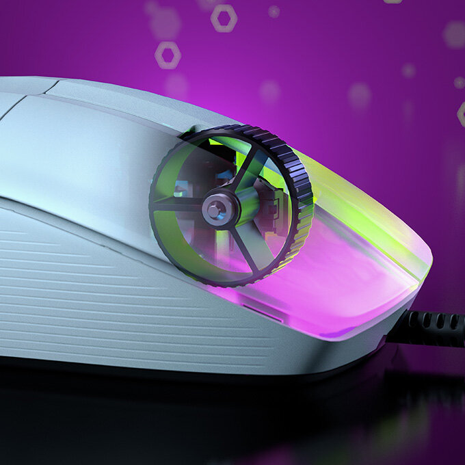 Frezowane z litego aluminium kółko Titan Wheel Pro to nasz najnowszy zabieg produkcyjny, który powoduje, że scrollowanie podczas korzystania z myszy jest lekkie, a zarazem bardzo wytrzymałe, Dodatkowo stosując w naszych urządzeniach technologię Titan Switch Optical każde kliknięcie myszy jest wyraźnie wyczuwalne, a niesamowicie krótki czas reakcji zapewnia niezrównaną szybkość i precyzję.