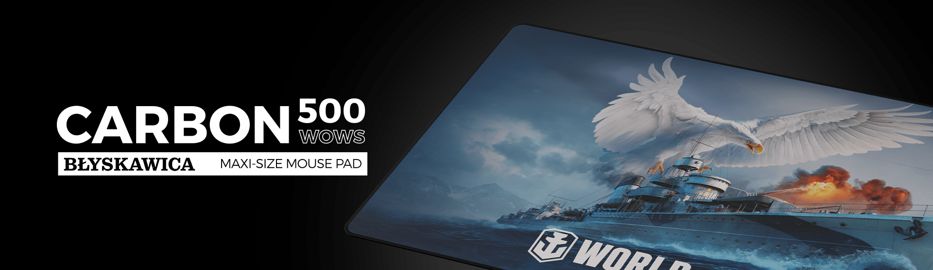 Carbon 500 Maxi WOWS Błyskawica Edition to doskonałej jakości gamingowa podkładka pod mysz o dużej powierzchni 900 x 450 mm. Wierzchnią warstwę podkładki zdobi unikatowa grafika z gry World of Warships, która doda wyjątkowości każdemu stanowisku. Najwyższej jakości gładka powierzchnia zapewnia pełną kontrolę ruchów i spełnia wymagania nawet najbardziej wymagających graczy.