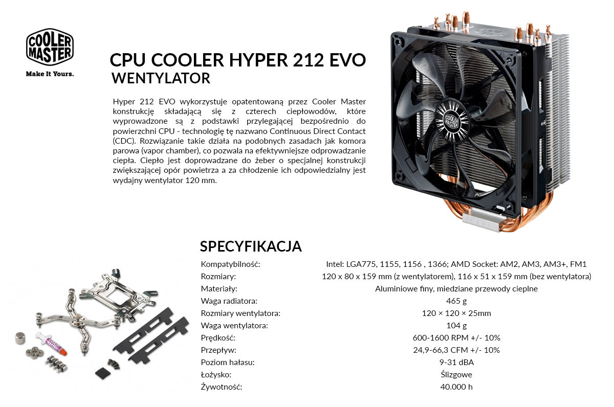 - Chłodzenie CPU COOLER MASTER Hyper 212 Evo