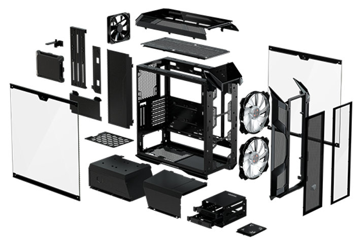 CZTERY PANELE WYKONANE ZE SZKŁA HARTOWANEGOPanele boczne „Edge-to-edge”, panel górny oraz przednia ściana obudowy zostały wykonane ze szkła hartowanego zapewniając przejrzysty widok na wszystkie komponenty. KOMPLEKSOWY PANEL PRZEDNIPanel I / O został wyposażony w port USB typu C 3.1 (Gen 2), a także w cztery dodatkowe porty USB 3.0. Na panelu znalazły się także złącza audio oraz dedykowane wejście do podłączenia adresowalnego kontrolera RGB do zarządzania oświetleniem. | ![]() |
