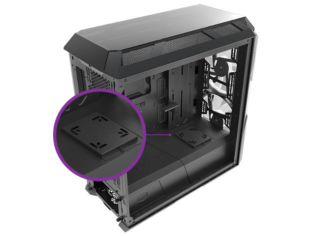 ![]() | WSPARCIE DLA CHŁODZENIA WODNEGOPrzedni oraz górny panel umożliwiają instalacje radiatora o maksymalnej długości 360 mm. Specjalny uchwyt umożliwia instalację chłodzenia wodnego na osłonie zasilacza. UCHWYT DLA KARTY GRAFICZNEJSpecjalny, regulowany uchwyt umożliwia montaż dłuższych kart graficznych. |