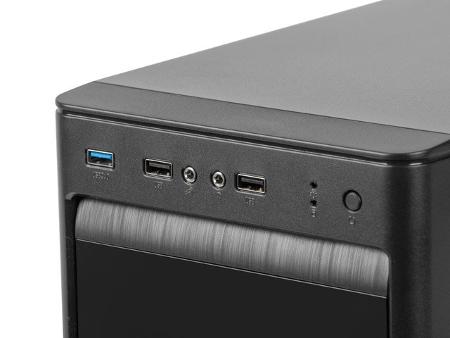 Na przednim panelu znajdują się 2 złącza USB 2.0, 1 złącze USB 3.0 oraz 2 złącza typu Jack.