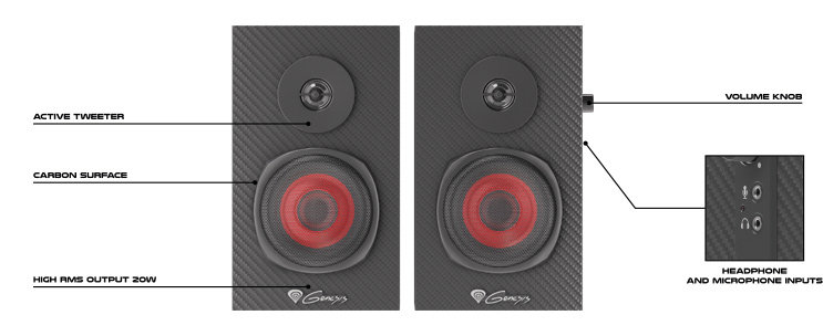 Każdy z głośników Helium 200 to drewniana konstrukcja wyposażona w 3 calowy głośnik niskotonowy oraz aktywny tweeter. Gwarantuje to świetną jakość nie tylko średnich tonów, ale przede wszystkim basu. Uzyskana charakterystyka dźwięku sprawdzi się zarówno podczas emocjonującej rozgrywki jak i przy słuchaniu ulubionej muzyki. Moc generowana przez głośniki to solidne 20 W.
