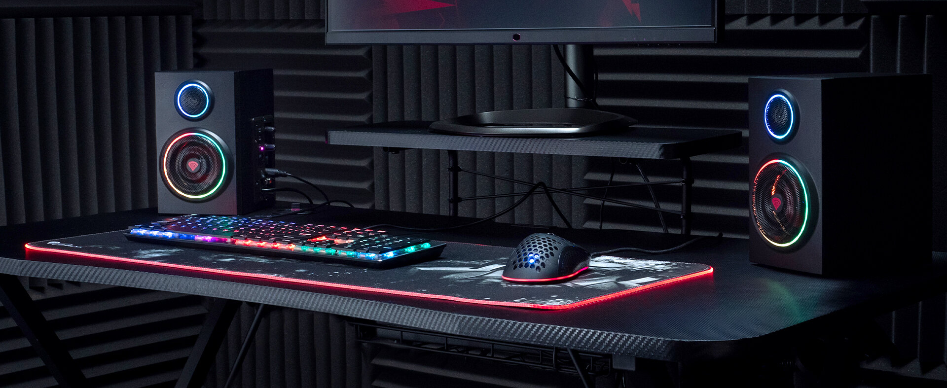 Elegancka czerń konstrukcji sprawia, że głośniki są niezwykle uniwersalne i z powodzeniem uzupełnią każde stanowisko gamingowe. Matowe karbonowe wykończenie w połączeniu ze zjawiskowym podświetleniem przyciąga wzrok i zapewni Ci wygraną w niepowtarzalnym stylu.