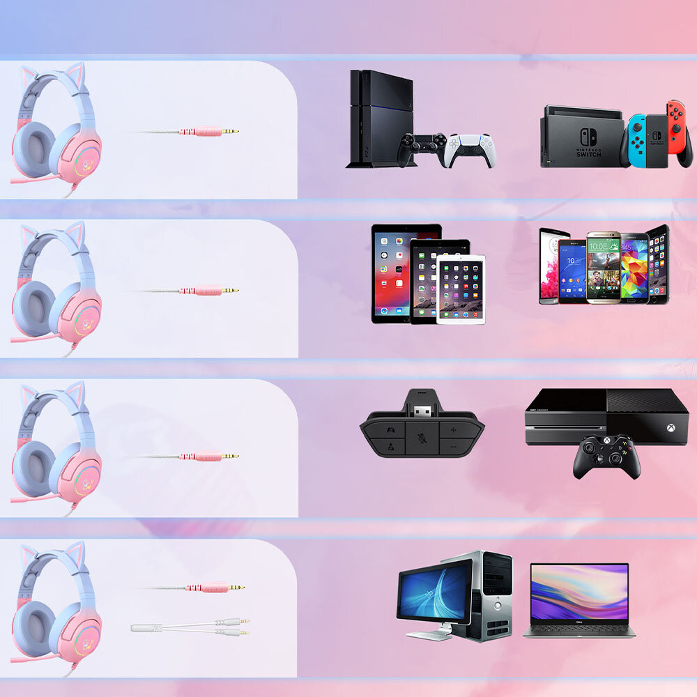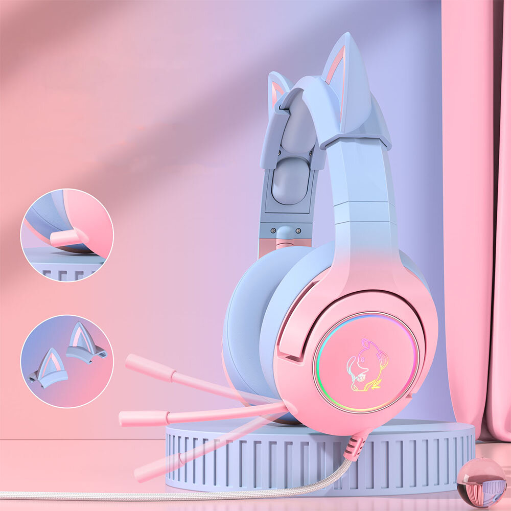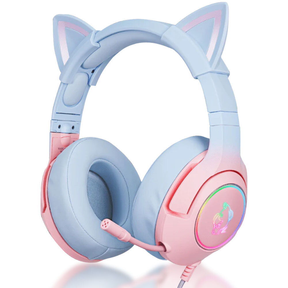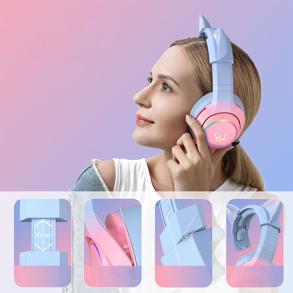 Słuchawki ONIKUMA K9 Cat RGB Nauszne, Dźwięk przestrzenny Różowo-niebieski