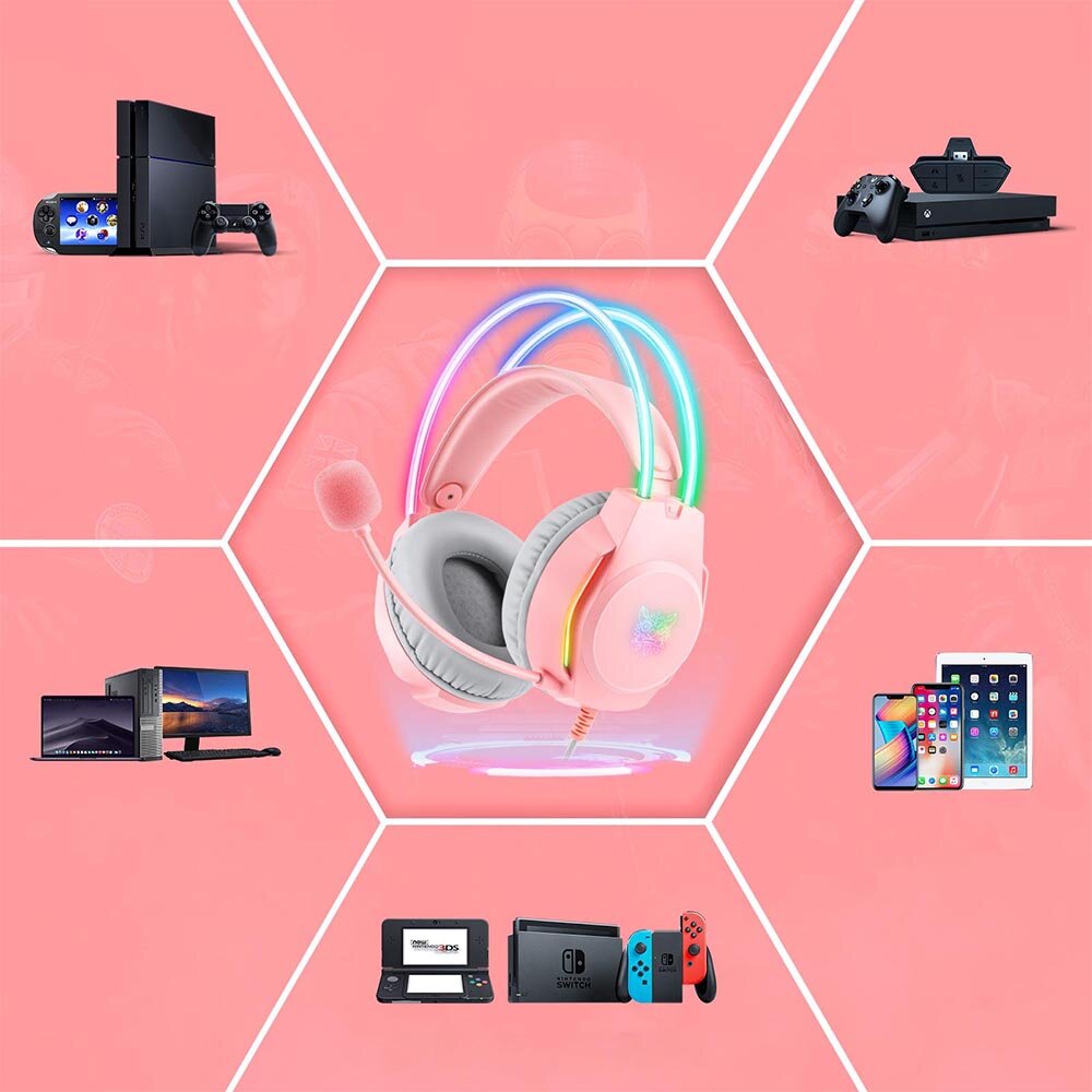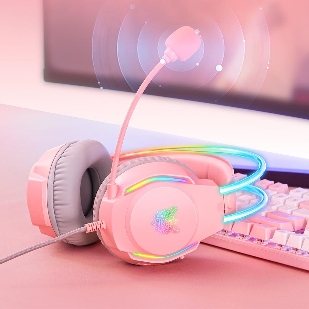 Słuchawki ONIKUMA X26 Nauszne, RGB, Dźwięk przestrzenny Różowo-szary