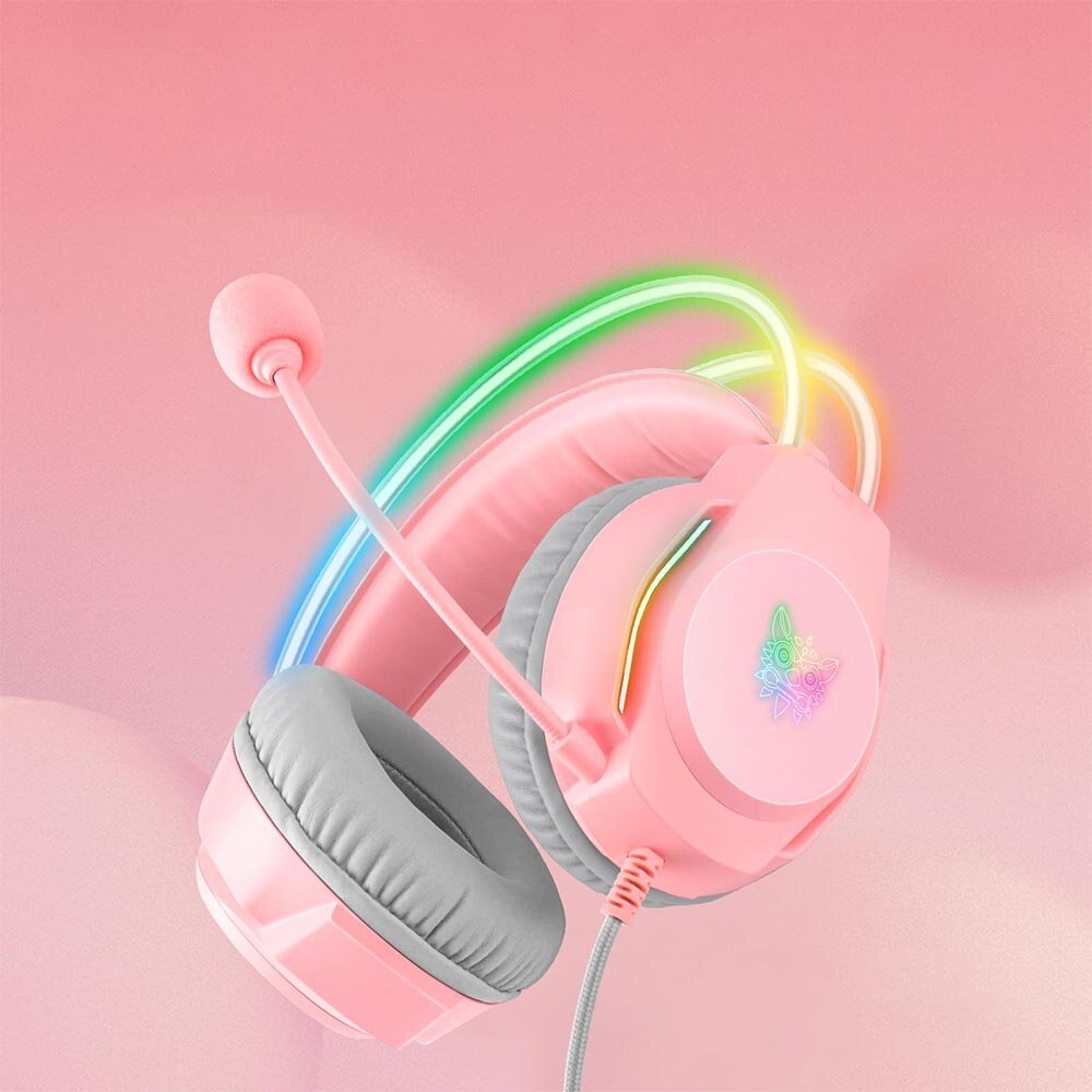- Słuchawki ONIKUMA X26 Nauszne, RGB, Dźwięk przestrzenny Różowo-szary