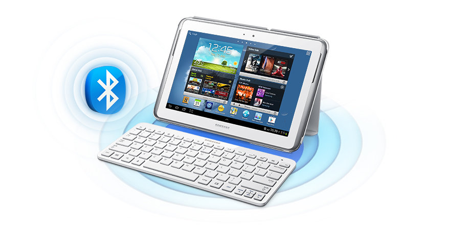 Klawiatura bezprzewodowa dedykowana dla tabletu Samsung Galaxy. Używa bezprzewodowej technologii bluetooth 3.0, w celu podłączenia się do tabletu lub telefonu. |