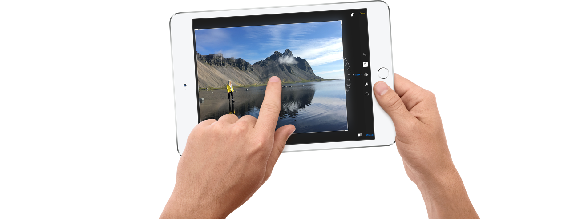 śmieszy. Smukłość tumani. Całość zaprasza. iPad mini 4 oferuje wszystko za co kochasz iPada w niewiarygodnie smukłej i poręcznej konstrukcji. Możesz pracować, bawić się lub rozmawiać z przyjaciółmi przez FaceTime — kiedykolwiek i gdziekolwiek zechcesz.