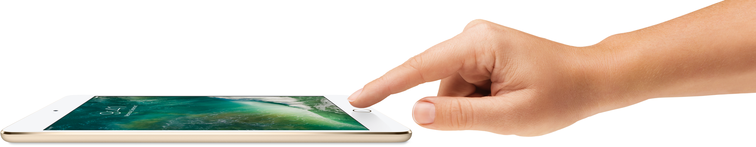 Dzięki technologii Touch ID iPad mini 4 zmienia Twój odcisk palca w hasło, którego nikt nie złamie, a Ty nie musisz pamiętać. Możesz odblokować urządzenie jednym dotknięciem, a Twoje dane osobowe będą zawsze bezpieczne, nawet jeśli dzielisz się iPadem z kimś innym. Touch ID umożliwia też bezpieczne zakupy w iTunes, iBooks i App Store.