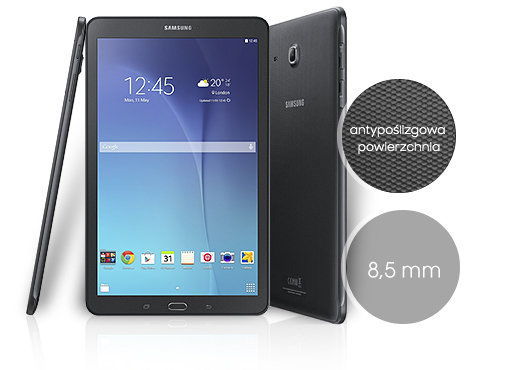 Galaxy Tab E został stworzony z myślą o Twojej wygodzie. Smukła obudowa o grubości 8,5 mm i stylowy design sprawią, że będzie Ci dobrze służył w autobusie, kawiarni czy na plaży. Unikatowy rozmiar, mniejszy niż standardowych 10-calowych tabletów, został starannie przemyślany, aby urządzenie było bardziej poręczne i ergonomiczne. Antypoślizgowa obudowa sprawia, że bezpiecznie i pewnie będziesz go trzymał w dłoni.